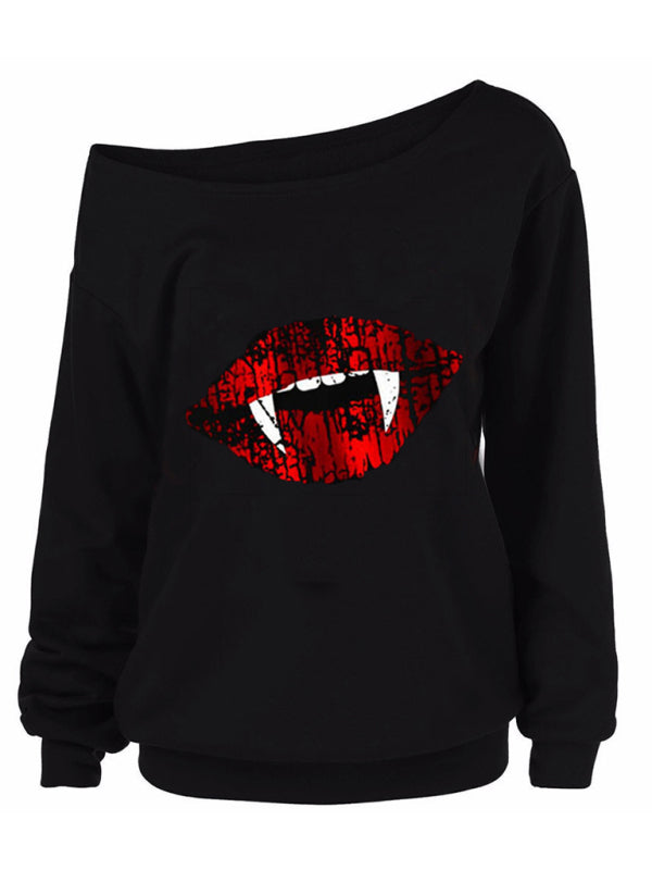 Vamp Lips Assymetrical Single Shoulder Long Sleeve Tee